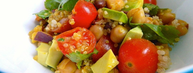This recipe was featured during a bilingual diabetes cooking class I had taught at the hospital offering Latino recipes. I've seen a growing number of Latino patients with newly diagnosed type 2 diabetes. The challenge is that beans and rice is such an important staple of their diets, often eaten 2-3 times a day. Some have … Continue reading Fiesta Bean Salad with Quinoa (Ensalada Fiesta con Frijoles y Quínoa)